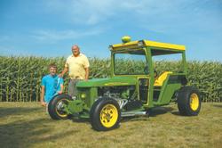 Adding to the agricultural look are rectangular lights, a toolbox off an old implement and a one-row planter on the back. However, while it may look a bit like a Deere tractor, it runs a little faster. The 350 Chevy engine and transmission give it the speed, and the hot rod frame and components give it the ride, cruising at road speeds of up to 80 mph.