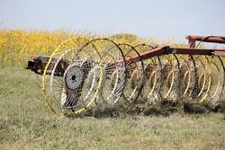 “We developed the system because we rake and bale grass hay, alfalfa, rye, forage sorghum, corn stalks, wheat straw and anything else that will make feed for our cattle feeding operation. We had to replace a lot of rake teeth, which cost us time and money.”