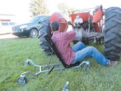 “I work with the AgrAbility Project. For people who have hip, knee or leg impairments, there was a need for a creeper with large enough wheels to serve as a crawling mechanism. But it’s ideal for anyone who wants to work on rough terrain. It has larger pneumatic wheels and a reclining seat to go at different angles. It has higher ground clearance (2 1/2 in.) to go across obstacles,” he explains.