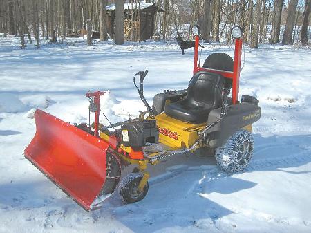 "I made a snowplow blade to fit onto my Hustler zero-turn riding mower. It turns on a dime and really gets the job done," says Hal Minnigan, Zionsville, Ind.