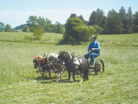 On his family's 10-acre hobby farm in Fort Plain, N.Y., his minis provide the power for a variety of jobs including putting up hay. They mow, rake and load 6 acres of hay 3 times a summer.