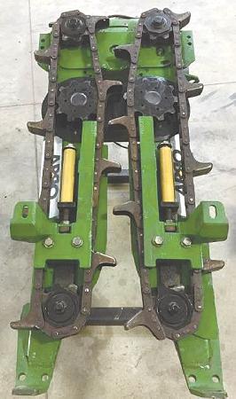 Installation is relatively easy with any production cornhead that uses 550 roller chain. Simply tilt the cornheads upright for access to row units and remove trash knives, stalk rolls and stalk-roll shaft housing. With the kit, stalk guides are bolted in place of trash knives on some models and gear case cover plates bolted onto the front row of unit gear cases. Front deck plate spacers and chain tensioners are reinstalled and adjusted.