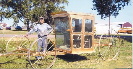 "I saw a fancy white carriage on TV and got to thinking that I could make one out of a combine cab," recalls Perrion. "Cabs have a door and lots of glass windows, and you can pick them up at salvage yards for a couple hundred dollars."
