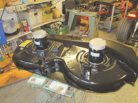 Edmond recommends checking with local repair shops for tractors headed for the scrap heap. He advises looking for tractors with 18-in. rims to match the gear ratio of his transaxle. Deck size is also important, as he has sized the electric motors to 19 to 21-in. blades.