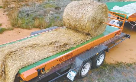 Australian sheep producer Patrick Daniher was exercising on a treadmill one day when he got the idea for a new way to feed hay from a pickup or trailer.