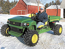 "Most people who see it think Deere built it and only realize it's unique after they take a closer look," says the Plum City, Wis., man. "It's slightly bigger than a real Gator. I finished building it two years ago, with about 90 days of construction time. I built it because I wanted something a little more fun to drive. I regard it as a cross between a dune buggy and a farm utility vehicle. It has quick acceleration with a top speed of up to 70 mph.