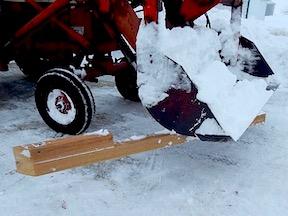 “So, I was looking at wings on road graders,” Pederson says, and he went on to bolt a wooden 4x4 under the loader bucket.