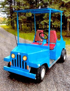 “It took me a couple of years, with several starts and stops before I got everything right, but all-in-all, it looks fairly authentic,” Pelland says. The front has vertical grill openings and a squared-off hood with embedded headlights and reflectors, vaguely resembling a Jeep. The side and rear panels and the operator platform are smooth and sturdy. Pelland configured a new steering column, bought two new padded seats, and built a metal roof supported by tube steel.