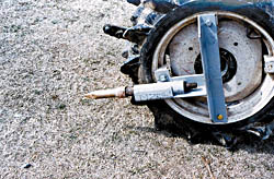 "I can't use it on fields with a lot of stumps and rocks, but on open fields it works perfect," says Zenz, who operates a tree farm. "The wheel measures 37 in. in diameter and happened to be just the right size for spacing the holes 8 ft. apart. We had been stepping off the distance between holes and then using a shovel-like device to punch a hole in the ground. Using a wheel-mounted device is a lot faster and simpler and also more accurate. If the ground is in normal condition the device punches a hole without raising the tractor at all. However, if the wheel hits a rock or tree stump it can really vibrate the tractor.