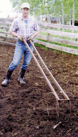 So the Busby, Alta., farmer designed a device to restrain and position animals for easy and safe access. It looks like the frame of a wheelbarrow and is simply rolled in under the back of the animal, spreading its legs and holding them apart.