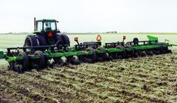 "Using a planter to strip-till is such a simple idea that a lot of people don't think it could work, but it does. We had been using a modified Deere 7000 planter toolbar as a strip-till rig to go with our 12-row planter, but when we traded up to a 16-row planter we needed to do something different. Many farmers apply anhydrous ammonia as they strip till during the fall, but we didn't want to do that because much of our soil is so wet that a lot of nitrogen would be lost. We've also used the planter to strip-till on sloping ground during the spring, just ahead of planting."