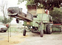 "I used the home-built machine for two years. It had so much capacity I didn't even have to rotate the cage -- just the rotor. It processed the crop much faster and cleaner than a conventional model. The big problem was that the hydraulics needed to operate the rotary separator used up about one third of the combine's horsepower. As a result I was able to go only 3 to 4 mph, which wasn't any faster than I had been going before the conversion. I'm sure that if I would have belt-driven the separator I could have greatly increased my ground speed.