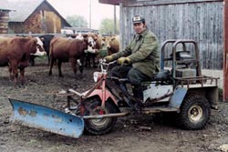 He says the home-built ATV took him about one winter in his spare time to build and it serves him well around the farm. He uses it for snow plowing, pulling yard trailers around, and for checking cows and fields.