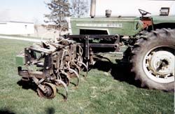 "It's a little more difficult to hitch up than a 3-point mounted cultivator. You can't just back into it and pick it up. I used four U-bolts to attach it to mounting brackets on the tractor," he says.