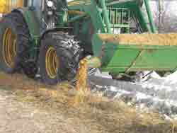 "The cattle go crazy for it, like kids for candy, and I can even get by with baled corn stalks if I need to," he says. "The biggest thing for me is that it makes feeding the cattle a one-man job. I can go in and pick up a bucketful and carry 1,000 lbs. of wet byproduct or about 700 lbs. of silage."
