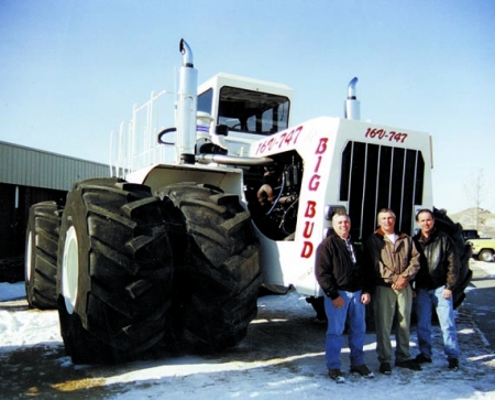 We received a lot of mail a few years ago when we stated that a South African-built 4-WD ACO tractor was the biggest in the world (Vol. 19, No. 4). Readers were quick to tell us about other tractors that have attempted to lay claim to the title, "World's Biggest". One frequently mentioned candidate was Versatile's Big Roy, an 8-WD, 600 hp giant that was built as a prototype and is now on display at a farm museum in Manitoba. We also got an earful about the Big Bud "747" that was built 20 years ago in Havre, Mont. The 4-WD Big Bud was built by Northern Manufacturing, in 1978. It measures 22-ft. wide by 29-ft. long with a cab that tops 14 ft. It's powered by a 16-cyl. Detroit diesel engine retrofitted with the biggest injectors available to produce a total horsepower rating of 980. The tractor weighs 100,000 lbs. without fuel in its 1,000-gal. tank or ballast in its four specially built, 8-ft. tall duals. The tractor was originally built for the Rossi Brothers in Bakersfield, Calif., where it was used to deep rip cropland to a depth of 30 in. with a 15-shank ripper built specially for the tractor. It worked 15 acres per hour at 6 to 6 1/2 mph, and it was said that when the ripper was pulled out of the ground at the end of the day, the points glowed red hot. The big tractor replaced the three Cat D-9's used to do the work before. The tractor was used in California for 11 years before being purchased by Willow Brook Farms in Indialantic, Fla., where it was used for deep ripping until last year. Its engine and rear differential were overhauled while the tractor was in service at the farm. When the tractor came up for sale last fall, two farmers near Big Sandy, Mont., acquired the tractor after officials from Big Equipment Co. (which services and sells used Big Buds) helped locate the one-of-a-kind tractor. Robert and Randy Williams were interested in the tractor for nostalgic reasons but they also wanted to put it to work on their farm. The tractor had about 8,000 hours on it, and the original Canadian-built tires had at least 50 percent tread left on them, says Ron Harmon, owner of Big Equipment. The Williams brothers restored the tractor over winter. It was taken down to the original metal, repainted the original white color and decals were replaced. A few axle parts also had to be replaced. The tractor will pay off, say the Williams, who use it to pull an 80-ft. Friggstad chisel plow. "It works over an acre per minute," says Robert. "You can do 60 or 70 acres an hour at 6 1/2 to 7 1/2 mph. It takes only two weeks to work 8,000 to 9,000 acres for small grains under optimal conditions. We put 300 hours on it this spring, no problems." The tractor uses two to three qts. of fuel per acre, a reasonable figure, they say. As for ground pressure, that's been measured at less than 5 psi's, dry. Fully ballasted and fueled, it would exert only 6 or 6 1/2 psi's, Harmon says.