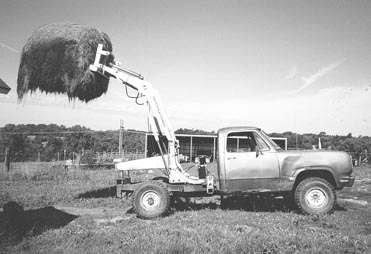 "It gets a lot of attention wherever I go," says Morrison. "The loader operates just like it does on a tractor. I can reach all the way across my trailer and I can stack bales two high. I can go down the road at highway speeds. That's important because I buy bales from fields scattered up to 25 miles from my farm. I've also found that it works great for trimming trees, building fence, carrying fence posts or railroad ties, etc."