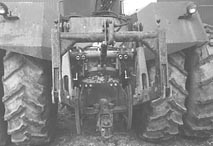 "The main subframe of the Case 3-pt. required that two half-moons be cut out of the top rails to clear the axle housings of the 4366. We fabricated mounting brackets for the subframe and welded a 2 1/2-ft. wide by 2-ft. high plate made of 3/4-in. thick flat plate across the back of the tractor. It was pre-drilled to accommodate the top link brackets. We shortened the drawbar support by 3 in. on each side and welded it in position about 4 in. higher than the Case draw-bar support had been. We plumbed it up simply adding an extra valve to the tractor's external hydraulic system.