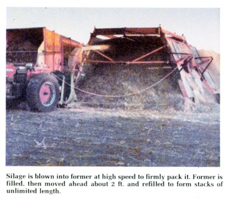 Silage is blown into the former with a conventional high capacity blower -- the same type used to fill upright silos. As the former is filled, it's moved ahead about 2 ft. at a time and refilled to make stacks of unlimited length.
