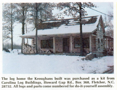 The original log house was designed for a 4 bedroom home. The Keoughan's altered the plan, turning the lower bath into a utility room and making a bathroom out of a lower bedroom. The master bedroom located above the kitchen and over a portion of the living area overlooks the fireplace.The Keoughans hired 3 high school boys to help assemble the 80,000-lb. kit of logs, windows and doors. "All the logs and parts were numbered and it went together slick as a whistle," John told FARM SHOW. "We hired someone to pour the foundation, then collected rocks and stones for the fireplace while we waited for the pre-cut pine logs to arrive by truck."