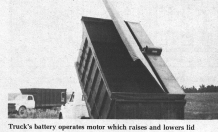 "The idea for this truck 'lid' came from necessity. A new state law against littering was being enforced, making it virtually impossible to legally haul silage or other material down the road in an uncovered truck," explains Edwin Scott, Mebane, N.C., designer and inventor of the new load-containing lid for dump trucks.