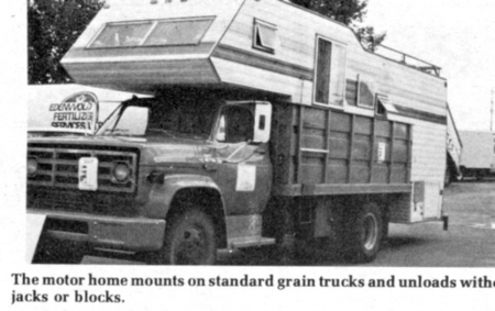 "Besides being one of the safest vehicles on the road, farm trucks are made to handle heavy highway loads. And you don't have money tied up in an expensive vehicle that can only be used for travel," points out Beler. The camper unit is self-contained except for cab-to-camper intercom. Options, such as air conditioning, are available.