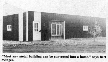 "Beats living in a trailer house," claims Bert Winger, Fergus Falls, Minn., who's lived for three years in a steel-sided pole barn house he built.