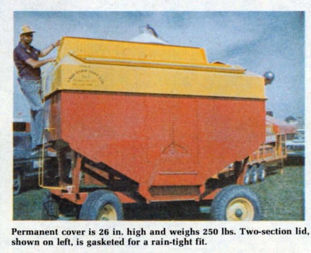 Custom built all-weather metal covers for hopper bottom wagons, introduced by 3-Way Farm Equipment, Petrolia, Ont., not only protect the load but boost load-carrying capacity of the wagon about 20%.