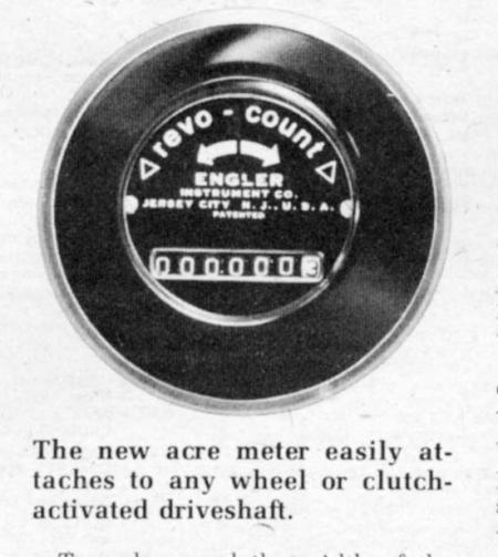 "The most trouble-free acre counter you can buy," says Gene Aufdenberg, of Aufdenberg Equipment Co., Sikeston, Mo., distributor of the unique Precision Acre Counter from Engler Instrument Co., Jersey City, N.J.