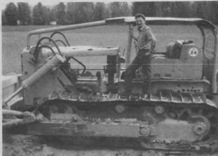 "The power of this matchup is unbelievable. In 3rd gear the tracks spin like mad when pushing a large tree or a lot of dirt, but the engine won't stall. I use it for clearing land up here where a small tree is 2 ft. in dia. But that's no problem for the Chev 454. I've used it a lot and it burns only 6 to 7 gal. of fuel per hour, which is less than the original diesel engine burned. I had a lot of people think I was crazy when I started this swap but they're all believers now. After two seasons, I'm only sorry I didn't do it sooner."