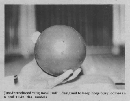 He puts one ball in each of his 25 by 35-ft. pens. He also puts balls in outside pens. He notes that when the balls are used outside, water some-times freezes in the finger holes and cracks the ball but that they retain their shape and are still useable.