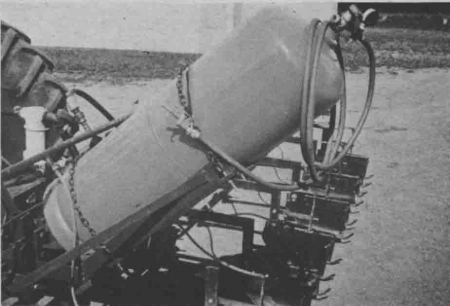 The desire for a safe, fast and easy way to clean plugged spray nozzles led Murdock, Minn., farmer Harold Peterson to build a nozzle cleaner for his sprayer. His idea, a "Sugarbeet Growers Idea Contest" winner, features an old LP gas tank with a 250 psi rating used as an air supply tank. Other parts included pipe fittings, a pressure gauge, hose long enough to reach each, end of the sprayer, and a valve stem used to fill the tank with an air compressor.