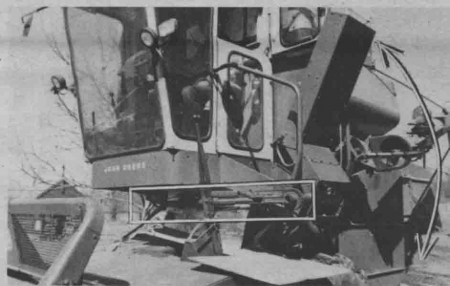 Paul Hewlett, Adrian, Mich., made a device to raise and lower the platform steps on his Deere 55 combine that will work on other combines with a similar problem.