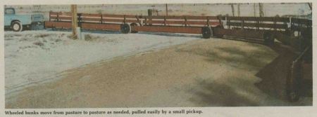 The new Porta Bunk is made from treated wood planks fitted to a heavy metal frame. Each 20-ft. section has an axle, outfitted with 14-in. tires, and a tongue that hitches to the bunk in front or to a tractor or pickup used to tow it.