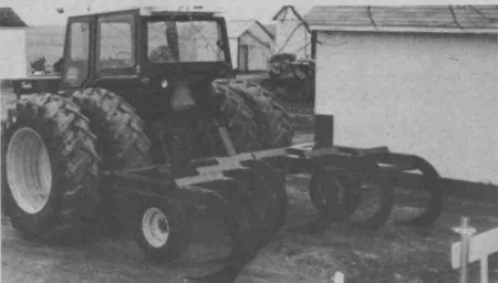 The rig mounts on his IH 1566's 3-pt. hitch. It took about 2 1/2 months to build.